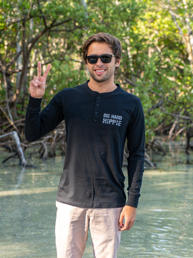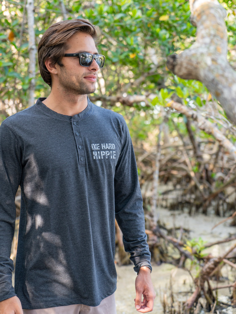 The well-loved long sleeve jersey henley shirt is updated with a retail fit, with cuffs, relaxed crew neck, and a tonal four-button placket. Designed with 100% Airlume combed and ring-spun cotton.