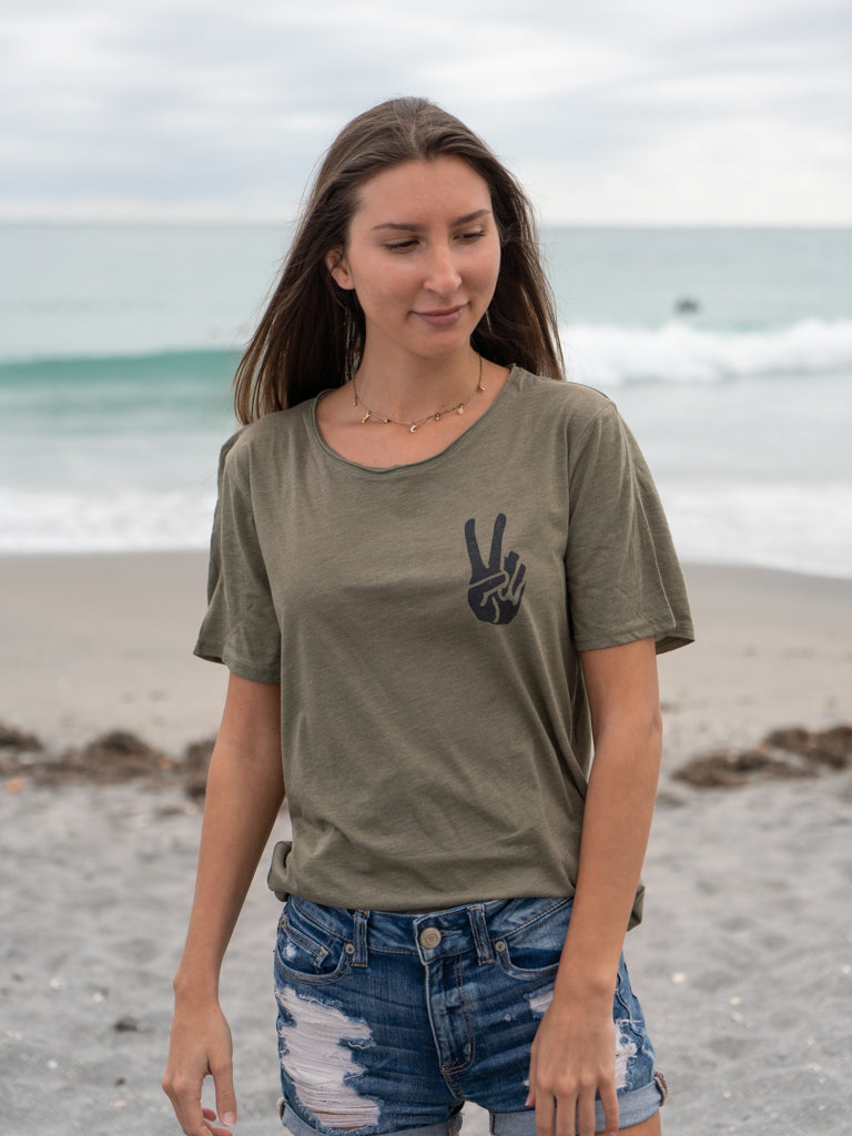 Unisex Peace Hand Raw Neck Tee